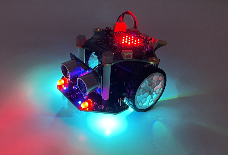 Das MotionKit ist ausgestattet mit 2 roten LEDs - eine ist links und eine rechts montiert. Diese beiden LEDs lassen sich getrennt voneinander ansprechen. Vier RGB-LEDs auf der Unterseite sorgen für ein magisches Fahrerlebnis.